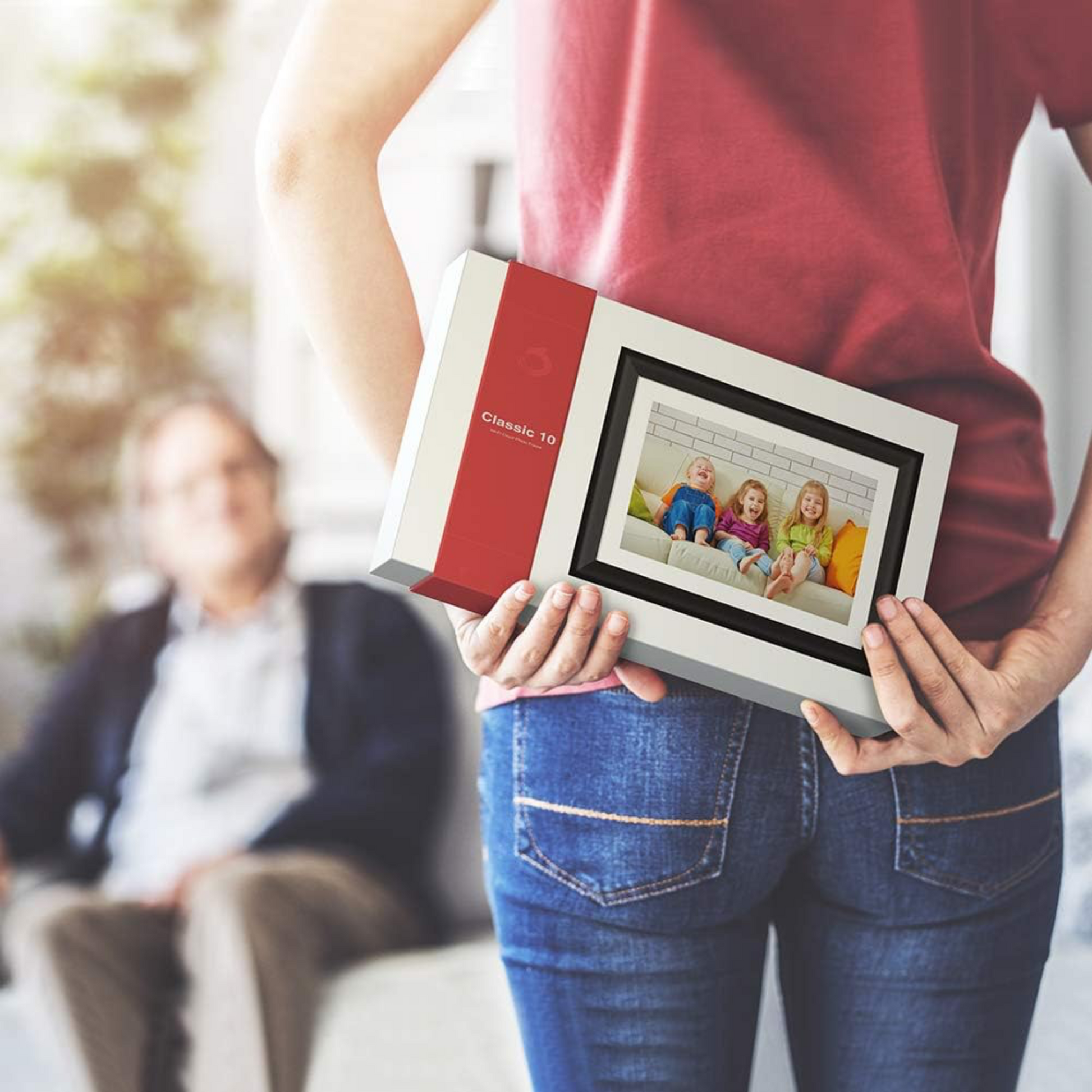 Het scherpe 10.1” HD-touchscreen toont al je herinneringen helder en levendig. Dankzij slimme functies zoals automatische diashow, schermrotatie en slaapmodus geniet je altijd van de beste kijkervaring – staand, liggend of aan de muur.