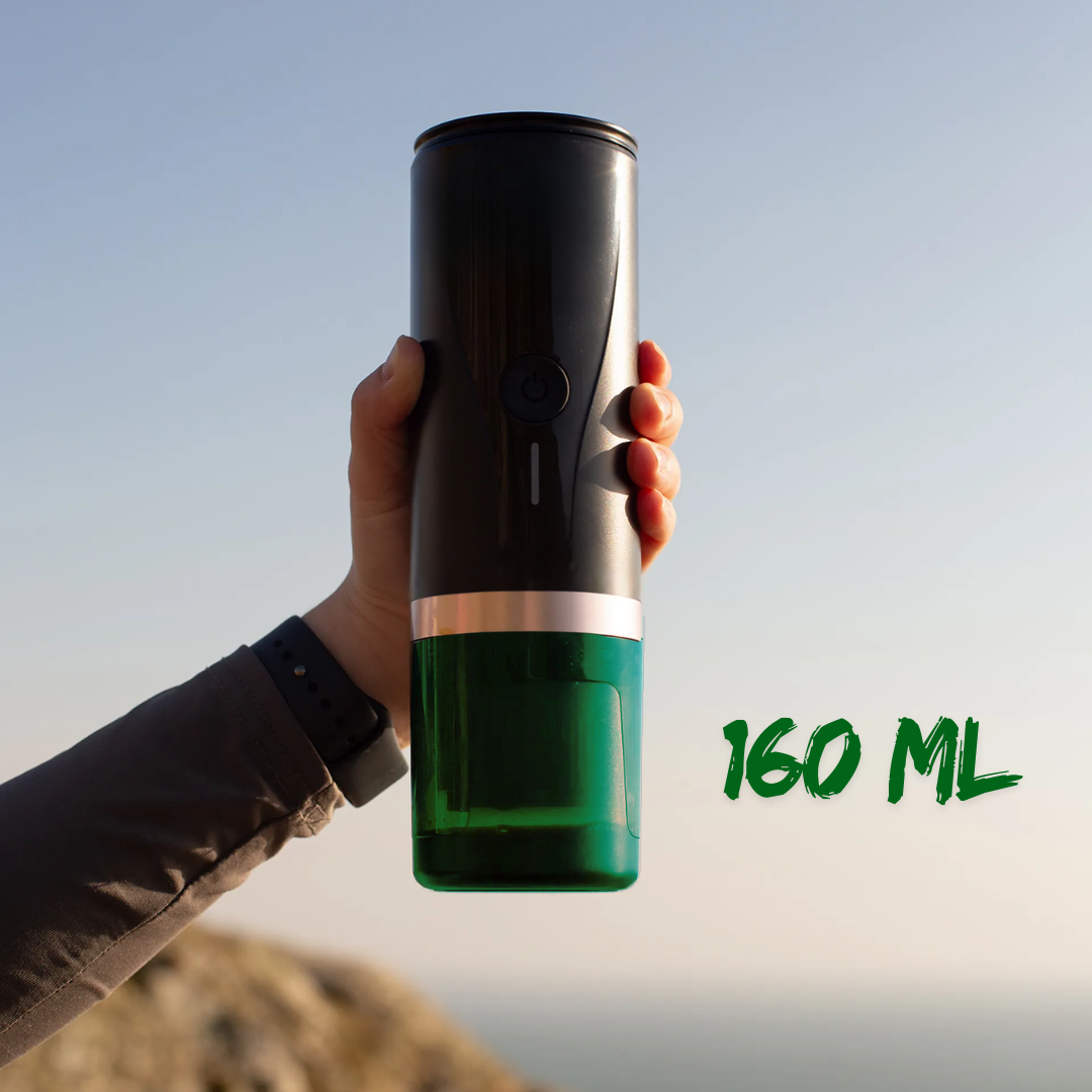 De Grind-N-Go Koffiemachine biedt de ultieme vrijheid om overal van je favoriete espresso te genieten. Of je nu reist, werkt, campeert of onderweg bent, deze draagbare machine is snel, eenvoudig te gebruiken en geschikt voor zowel koffiepoeder als capsules.