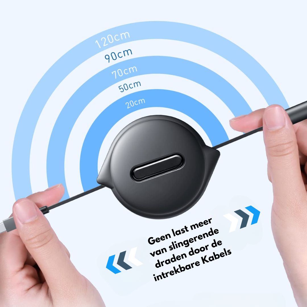 Heel handig! De intrekbare kabel voorkomt rommel en de lengtes zijn perfect voor dagelijks gebruik.