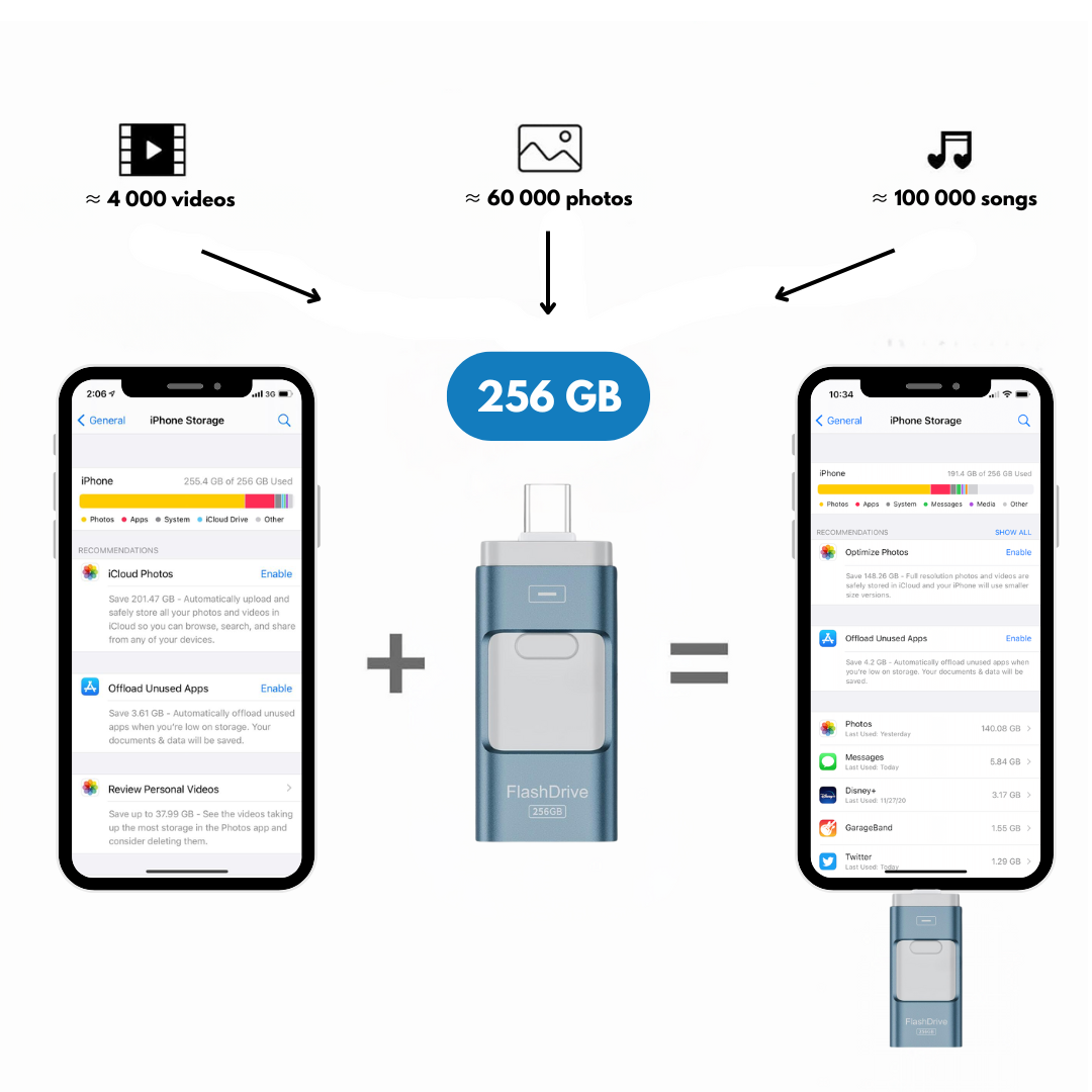 Tot slot zorgt de SnapStick™ voor extra opslagruimte op je telefoon, ideaal voor het veilig bewaren van foto's, video's en documenten.